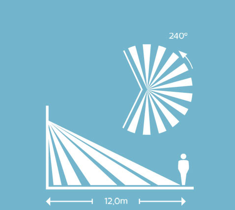 Hvis der er mange reoler eller maskiner i industribygningen, kan det være nødvendigt med endnu en sensor for at opnå et tilstrækkeligt stort registreringsområde.