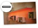 Esimerkiksi upotetut valaisimet, jotka korostavat sisustuksen yksityiskohtia.