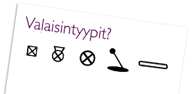 Nämä kuvakkeet kertovat eri tyyppisten valaisimien käyttötarkoitukset: